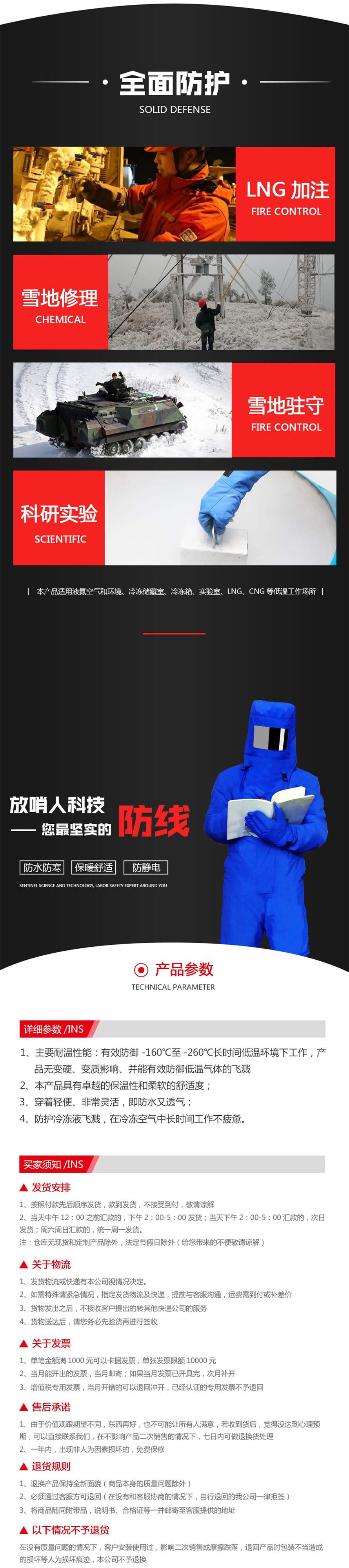 该产品适用于液氮空气和环境,冷藏室,冷冻室,实验室,LNG,CNG和其他低温工作场所